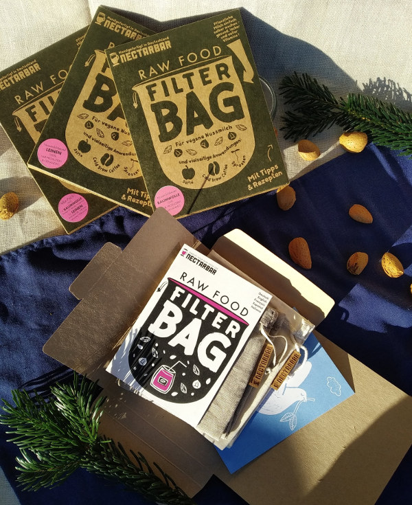 Unsere NECTARBAR Filterbeutel fertigen wir lokal in Deutschland mit Liebe zum Detail im kleinen Team in einer inhaberingeführten Nährei. Je nach Einsatzgebiet sind sie feinmaschig oder etwas lockerer gewebt. Dabei liegen sie optimal in der Hand und mit abgerundeten Schnitt haben wir sie speziell konzipiert für das Selbermachen von Pflanzendrinks, das bedeutet vegane Milchalternativen, wie Nussmilch oder Hafermilch. Natürlich sind sie aber auch für viele weitere Anwendungen nutzbar.
