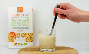 Dieses Haferdrinkpulver ist sehr praktisch in der Anwendung für alle die es eilig haben. Es ist die Alternative zum Getränkekarton oder zum Selbermachen mit Enzymen (siehe unser Haferdrink Enzym-Set). Die Zubereitung ist denkbar einfach: 4 gehäufte TL Pulver (25 g) mit 250 ml Wasser mixen oder verrühren. Auf diese Art ist es für viele Gelegenheiten, auch wenn gerade kein frischer Haferdrink im Haus ist, eine super schnelle und leckere Lösung.