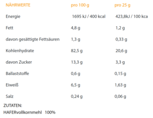 Dadurch, dass dieses Hafervollkornmehl fermentiert wurde, schmeckt es ohne die Zugabe von Zucker oder anderen Zusatzstoffen von Natur aus leicht süßlich (13,3 g Zucker auf 100 g).