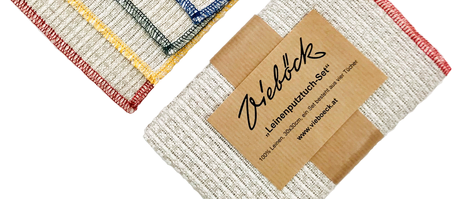 Die beliebten Tücher werden in einer lockeren Waffelbindung gewebt und kommen mit 4 farbigen Rändern. Aufgrund der besonderen Waffelstruktur entsteht eine hohe Schmutzaufnahmefähigkeit. Die Vieböck-Putztücher können viel Feuchtigkeit aufnehmen und trocknen zudem sehr schnell. Die antibakteriellen Eigenschaften von Leinen machen die Tücher ideal für den Einsatz in der Küche und generell zum Putzen.